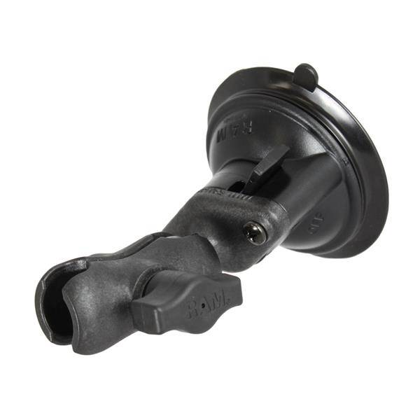 The RAM® Twist-Lock™ Composite Suction Base with Double Socket Arm consists of a 3.3" suction cup twist lock base and short length double socket arm for 1" ball diamond bases. The suction cup base is designed to have a strong hold on glass and non-porous plastic surfaces, including RAM adhesive disks. The mount is designed with a RAM 1" diameter patented rubber ball and socket system that has adjustment points at both ends of the double socket arm; this allowing for almost infinite adjustment and perfect viewing angles. The socket arm is compatible with all 1" ball bases and adapters.